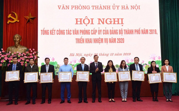 Nhân dịp này, nhiều tập thể, cá nhân thuộc Văn phòng Thành ủy và Văn phòng cấp ủy các cấp của Hà Nội đã được tặng thưởng Bằng khen của Ban Thường vụ Thành ủy, Cờ thi đua xuất sắc và Bằng khen của UBND TP, Giấy khen của Văn phòng Thành ủy vì những thành trong công tác năm 2019.