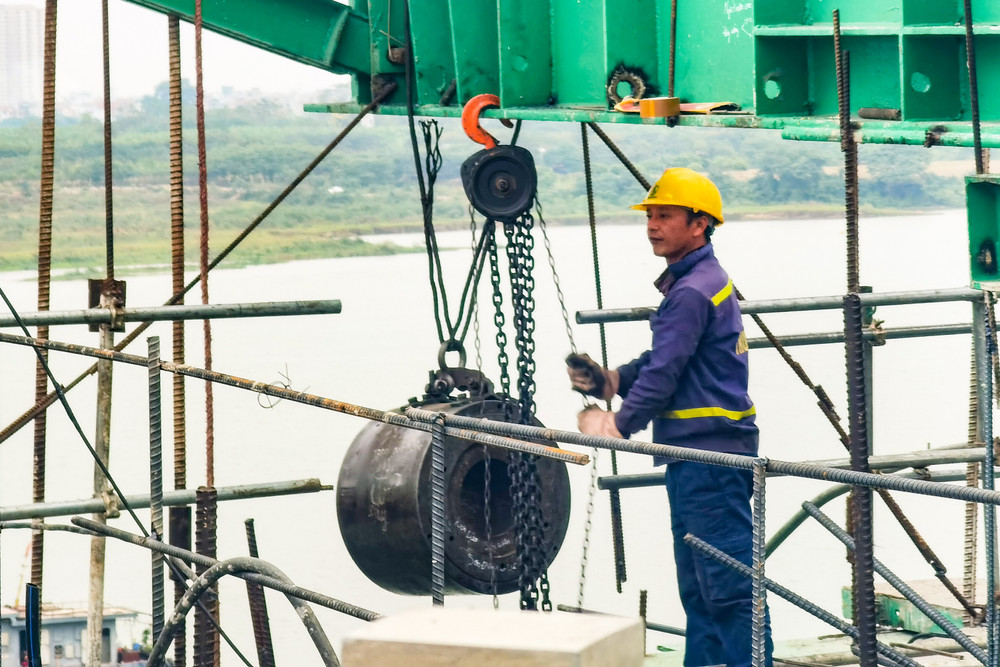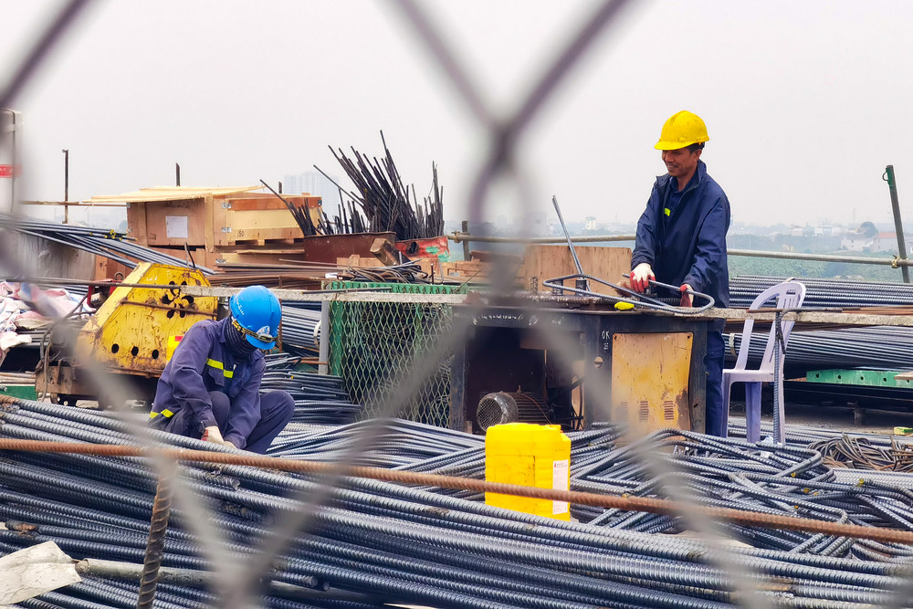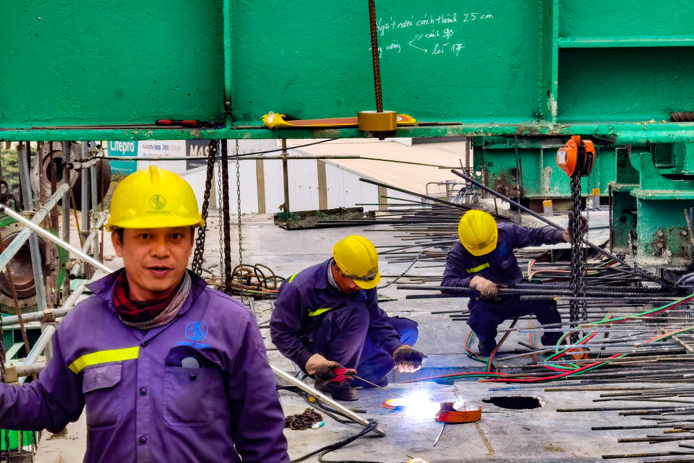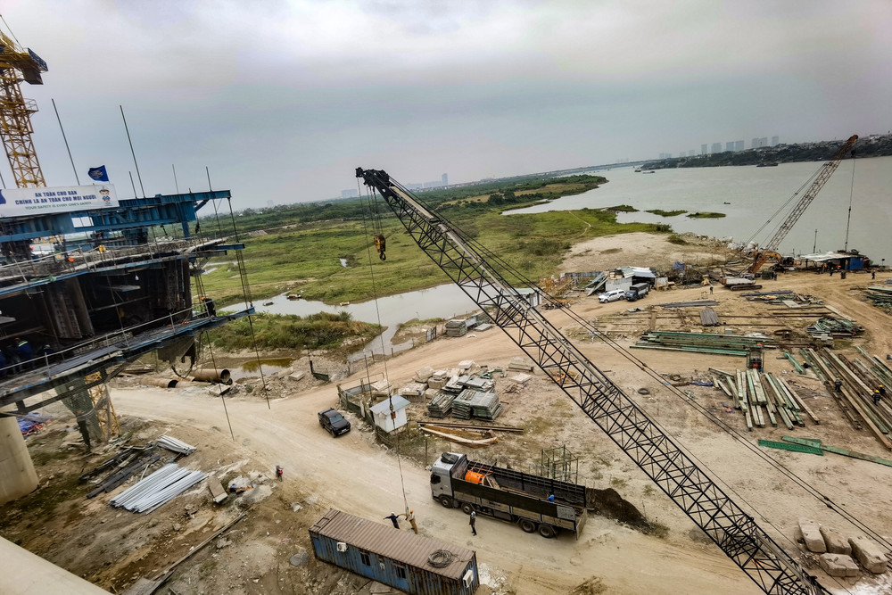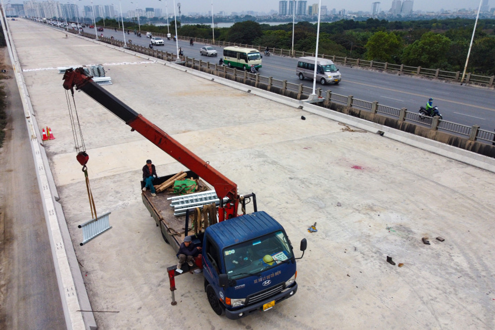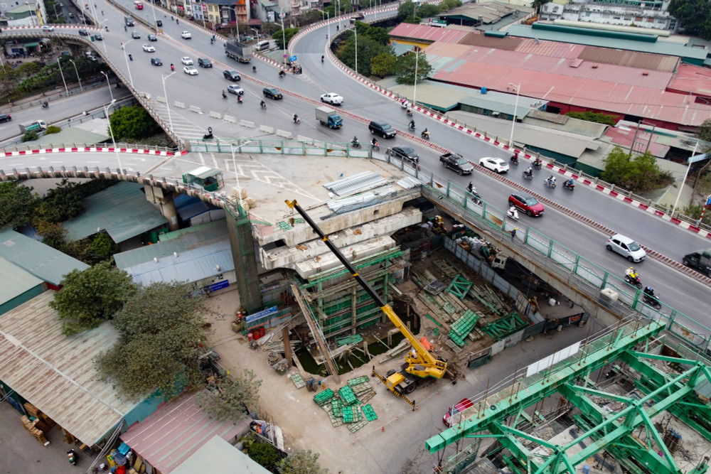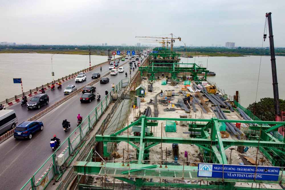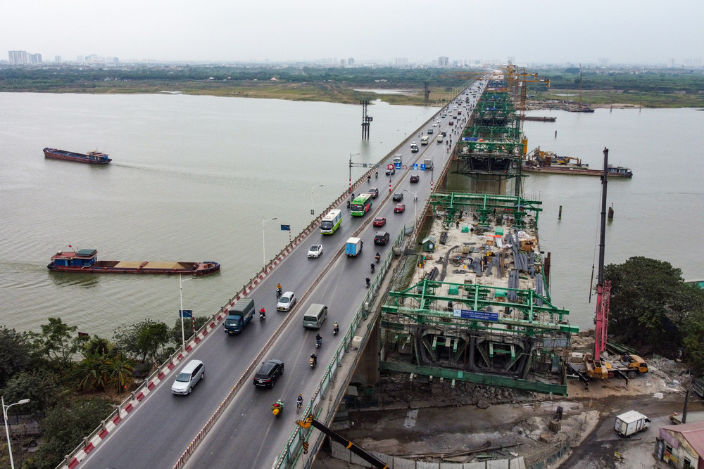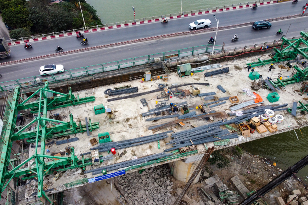Công trường cầu Vĩnh Tuy giai đoạn 2 những ngày cuối năm 2022