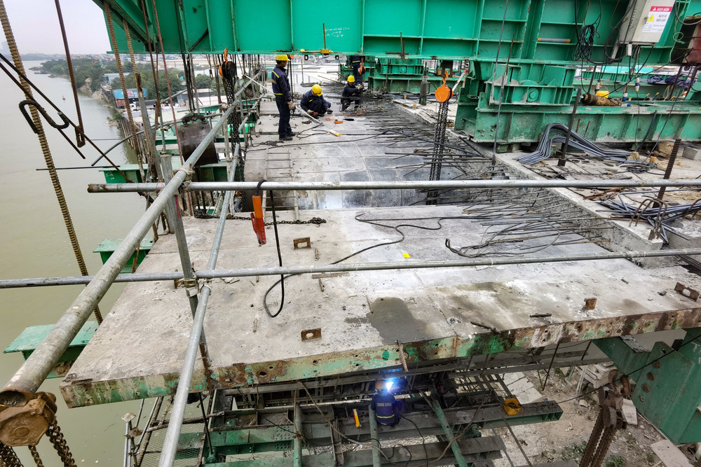ANTD.VN - Những ngày cuối năm 2022, công trường dự án cầu Vĩnh Tuy giai đoạn 2 đang gấp rút thi công và đang dần hiện rõ hình hài cây cầu có chiều rộng mặt cắt ngang lớn nhất Hà Nội với 8 làn xe ô tô...