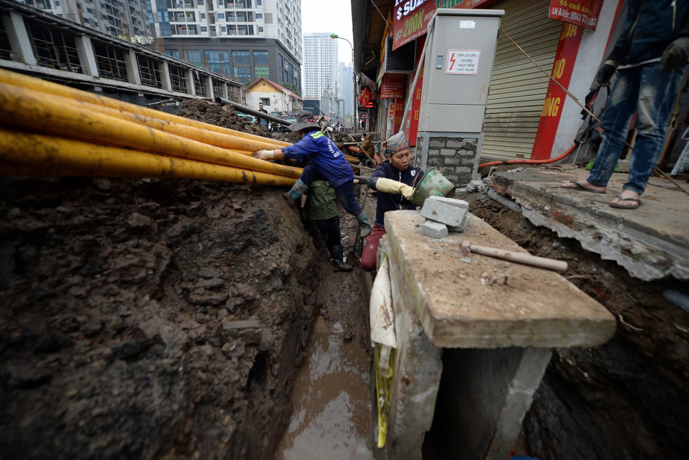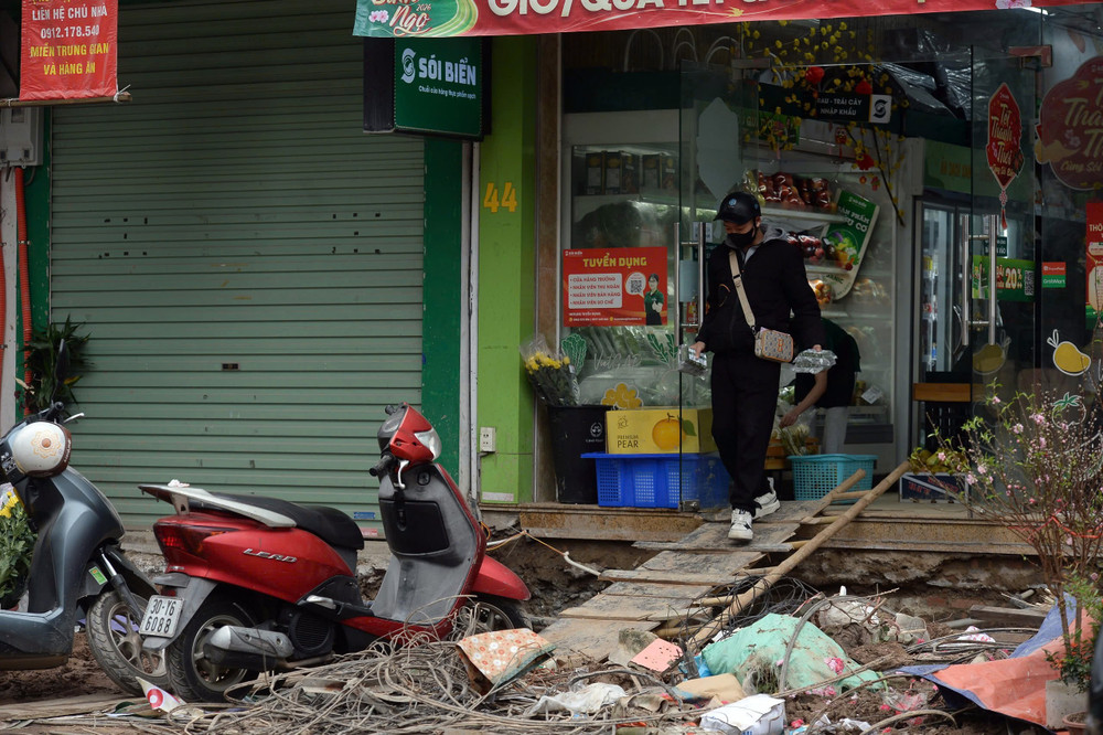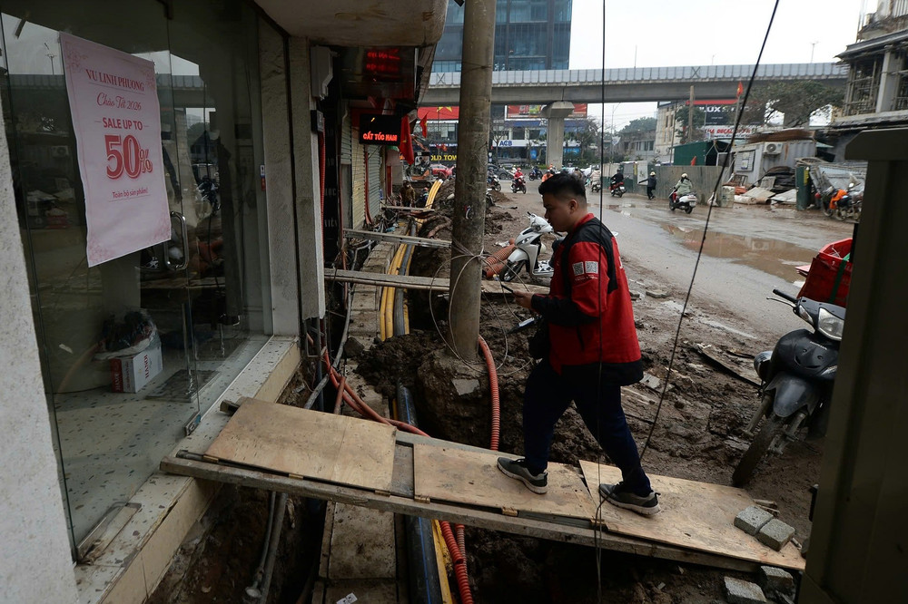 ANTD.VN - Chỉ còn ít ngày nữa là đến Tết Nguyên đán Bính Ngọ 2026, tuy nhiên dự án mở rộng đường Nguyễn Tuân (quận Thanh Xuân, Hà Nội) vẫn đang trong giai đoạn thi công gấp rút các hạng mục hạ tầng kỹ thuật. Việc đào rãnh sâu để lắp đặt hệ thống thoát nước và hạ ngầm cáp đã khiến mặt đường lầy lội, người dân phải tận dụng ván gỗ, thang cũ để làm lối đi tạm vào nhà, gây ảnh hưởng không nhỏ đến đời sống và hoạt động kinh doanh dịp cuối năm.