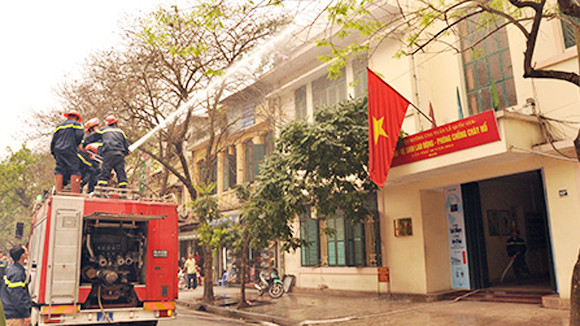 ANTĐ - Hưởng ứng tuần lễ Quốc gia An toàn vệ sinh lao động, phòng chống cháy nổ năm 2014, sáng 29-3, Công ty Điện lực Hoàn Kiếm - Tổng Công ty Điện lực thành phố Hà Nội đã phối hợp với Phòng Cảnh sát PCCC Hoàn Kiếm - Sở Cảnh sát PCCC TP Hà Nội tổ chức buổi Diễn tập phương án chữa cháy, cứu người thoát nạn năm 2014 tại trụ sở công ty (ảnh).