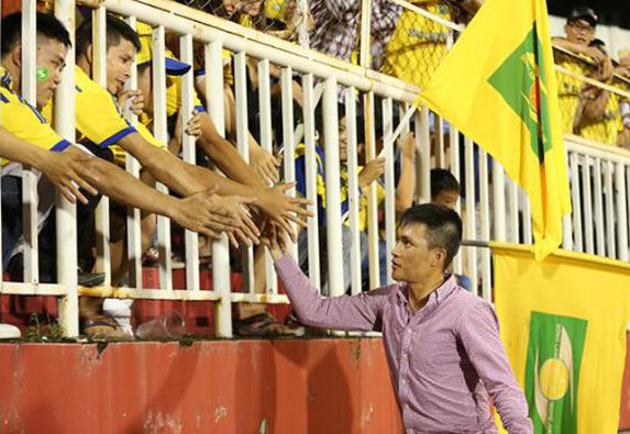 Kết thúc trận đấu, quyền Chủ tịch CLB Lê Công Vinh đã đi vòng quanh sân để bắt tay, cảm tạ tình cảm và món quà ý nghĩa của khán giả đồng hương dành cho mình.