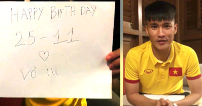 Mở đầu clip, Công Vinh trưng một tờ giấy có dòng chữ: "Happy Birthday vợ yêu 25-11", do tự tay mình viết.