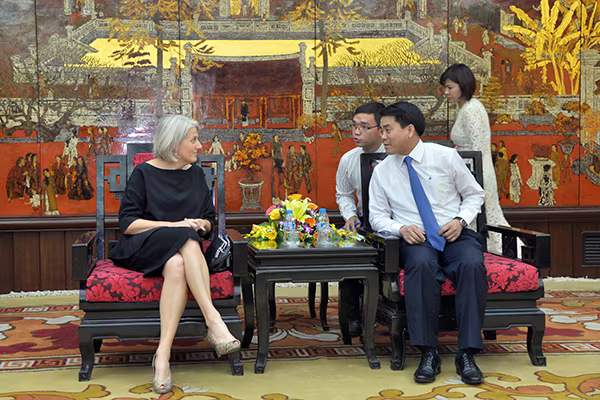 Chủ tịch UBND TP Hà Nội Nguyễn Đức Chung đón tiếp bà Charlotte Laursen - Đại sứ đặc mệnh toàn quyền Vương quốc Đan Mạch tại Việt Nam