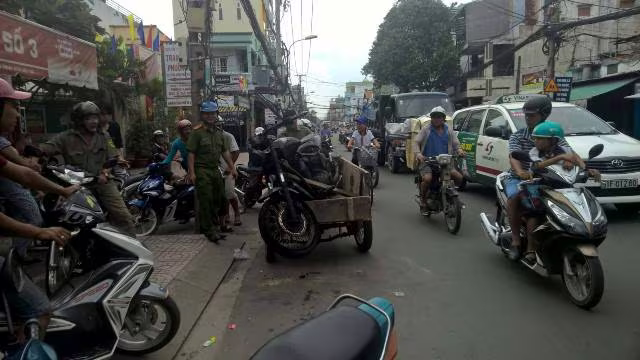 “Tôi đang đi phía sau thì bất ngờ phát hiện chiếc xe bốc khói nghi ngút từ lốc máy, nhanh chóng người cầm lái đã quăng xe giữa đường rồi chạy vào lề”, một nhân chứng kể.