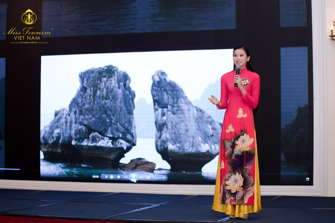 Trong ngày thứ 2 của vòng chung kết, các thí sinh đã bước vào phần thi thuyết trình với chủ đề “Quảng bá du lịch Việt Nam trên đấu trường quốc tế”.