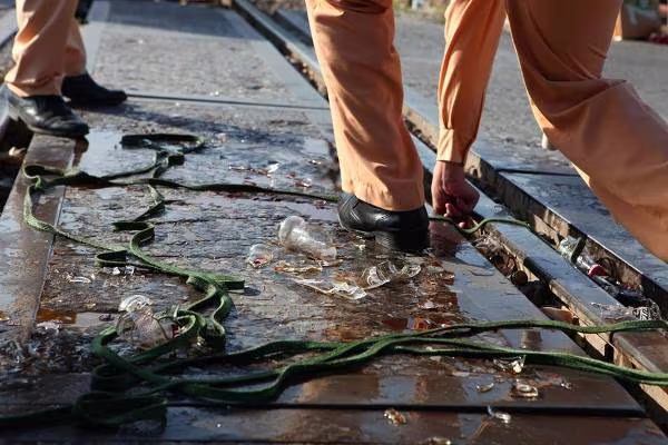 CSGT cũng tham gia kéo barie chắn tàu và phân luồng giao thông tại khu vực để không xảy ra sự cố đáng tiếc. Hàng chục chai nước ngọt đã bị đoàn tàu nghiến nát, để lại những vỏ thủy tinh vỡ trên đường tàu rất nguy hiểm. CSGT đã cùng với nhân viên gác chắn đường tàu nhanh chóng quét dọn, đảm bảo ATGT, tránh không để xảy ra nguy hiểm cho người tham gia giao thông.