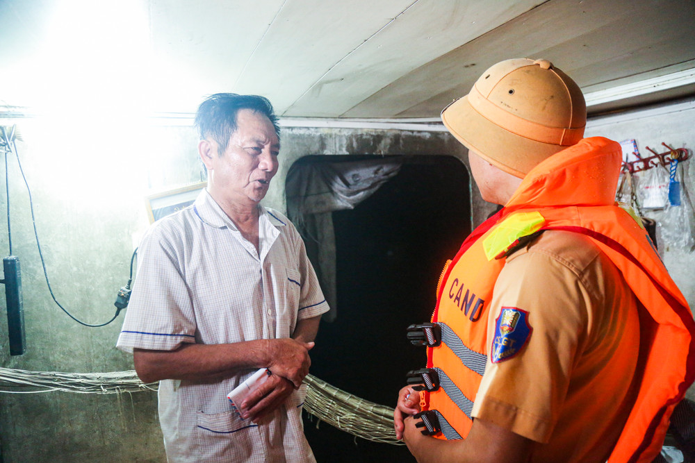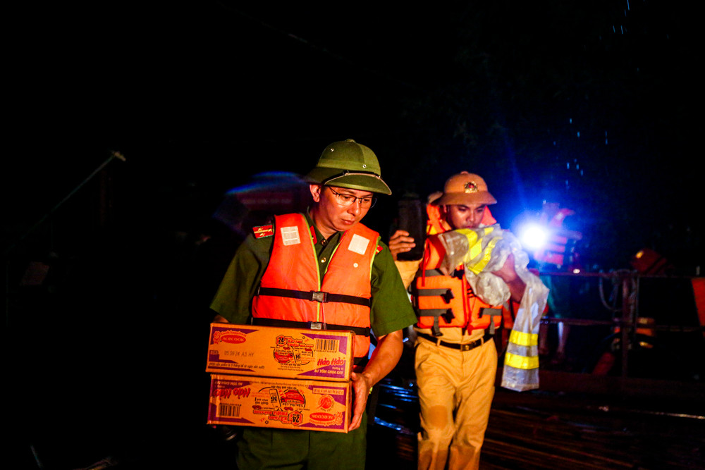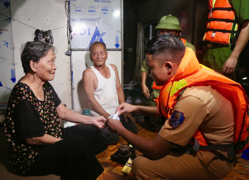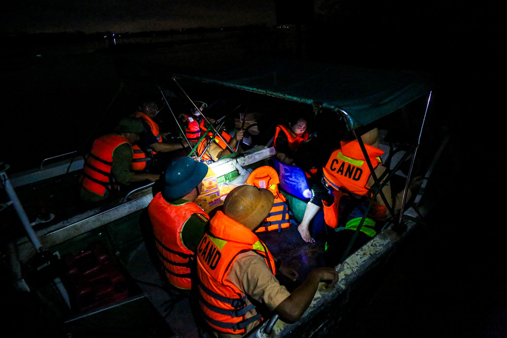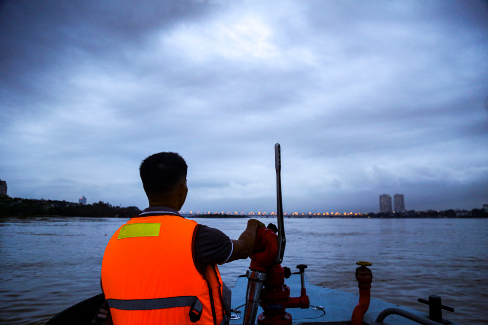 ANTD.VN - Trước tình hình nước sông Hồng liên tục dâng cao do mưa lũ, trong đêm 10/9, Đội Cảnh sát giao thông đường thuỷ số 2 (Phòng CSGT, Công an Hà Nội) đã huy động 2 xuồng, 6 chiến sĩ tổ chức tuần lưu dọc tuyến sông Hồng, nắm tình hình, hỗ trợ người dân chằng chống tàu thuyền, gia cố các phương tiện neo đậu để đảm bảo an toàn, đồng thời hỗ trợ lương, thực phẩm cho bà con vạn chài.