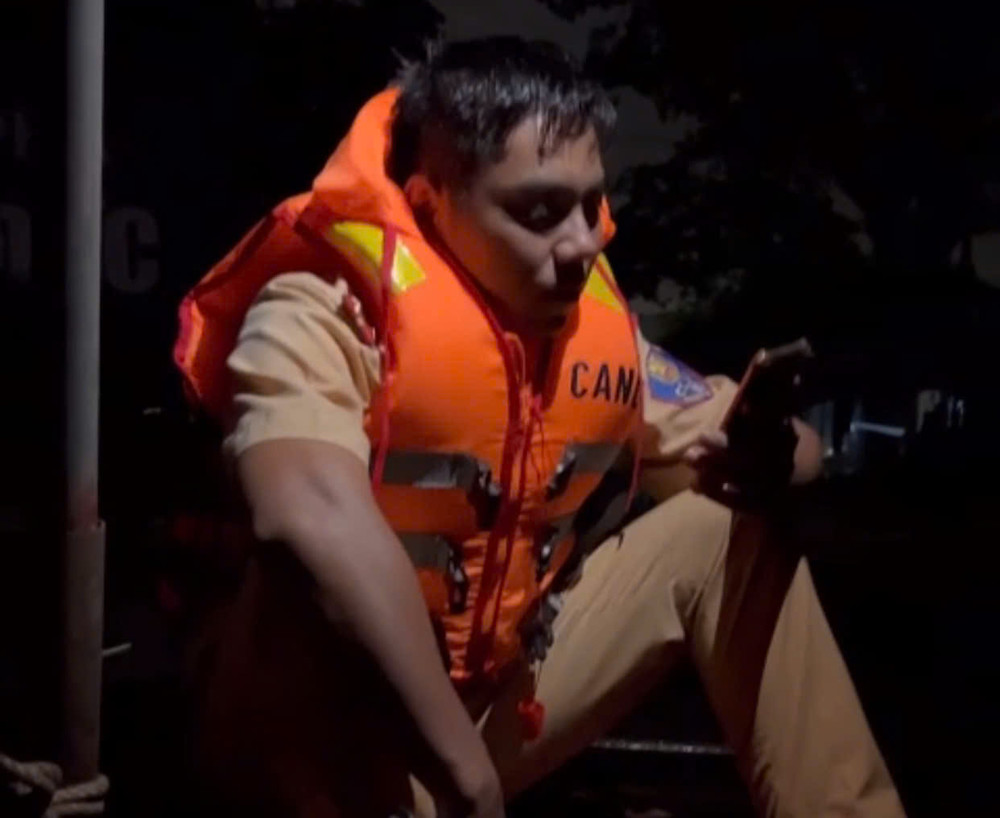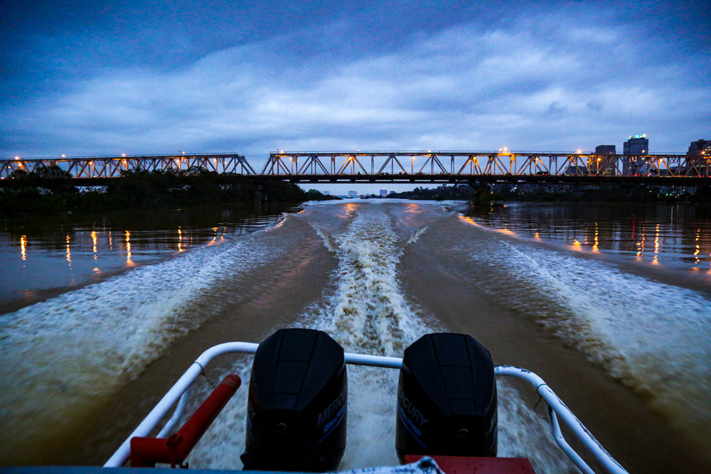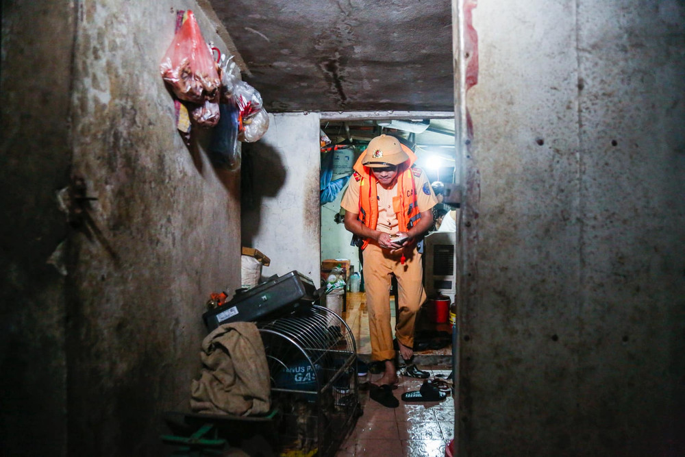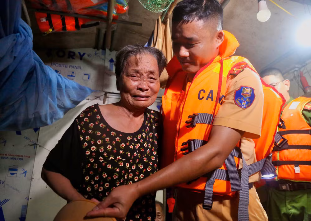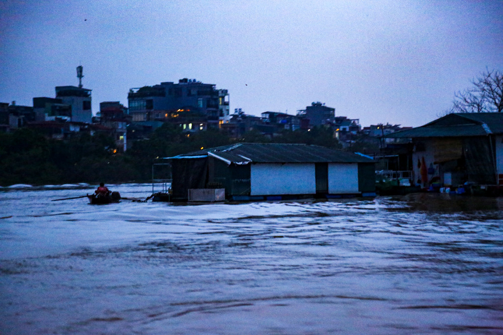 ANTD.VN - Trước tình hình nước sông Hồng liên tục dâng cao do mưa lũ, trong đêm 10/9, Đội Cảnh sát giao thông đường thuỷ số 2 (Phòng CSGT, Công an Hà Nội) đã huy động 2 xuồng, 6 chiến sĩ tổ chức tuần lưu dọc tuyến sông Hồng, nắm tình hình, hỗ trợ người dân chằng chống tàu thuyền, gia cố các phương tiện neo đậu để đảm bảo an toàn, đồng thời hỗ trợ lương, thực phẩm cho bà con vạn chài.