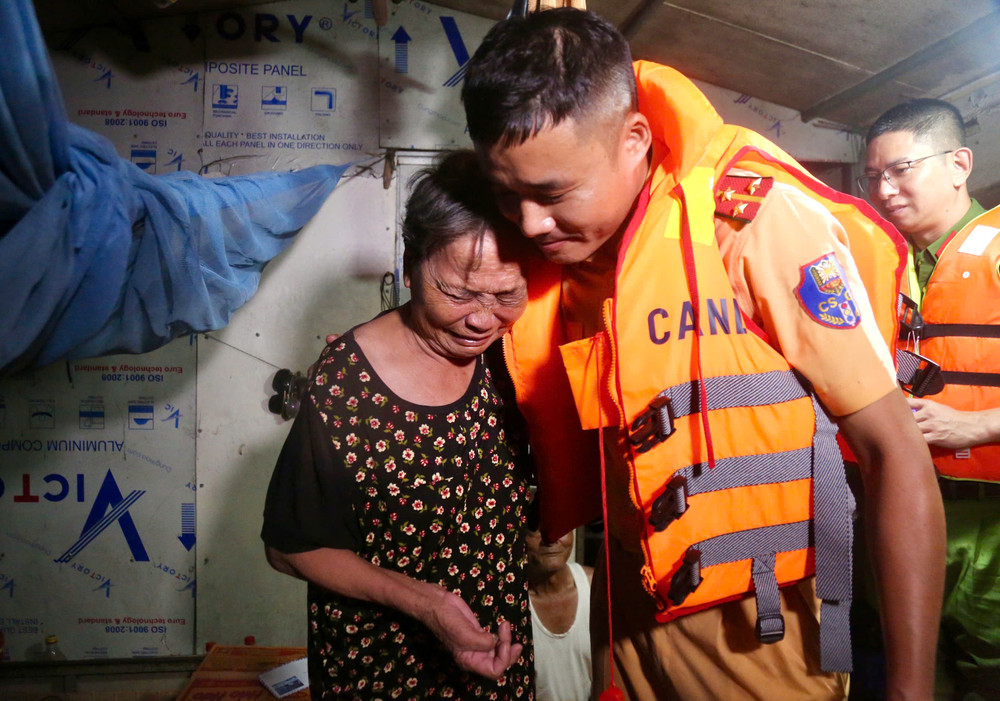 CSGT đường thuỷ Hà Nội tuần tra xuyên đêm, giúp người dân chống lũ