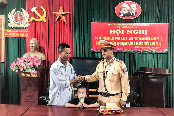 Anh Nguyễn An Long vui mừng đón con tại trụ sở đội CSGT số 12, CATP Hà Nội