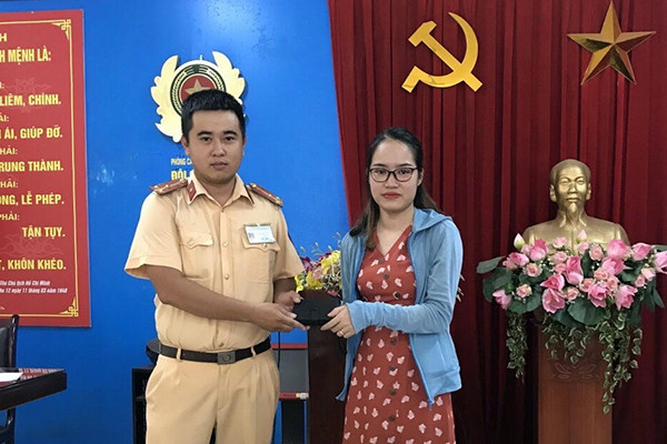 Đến 11h30 cùng ngày, chị Khuyên đã đến trụ sở đội CSGT số 4 để nhận lại tài sản. Xúc động khi nhận lại tài sản, chị Khuyên đã viết thư cảm ơn gửi đến Ban Giám đốc CATP Hà Nội; Ban chỉ huy phòng Cảnh sát giao thông, đội CSGT số 4.
