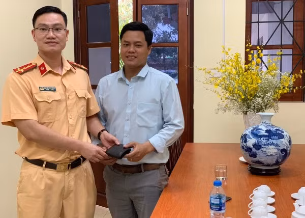 Trước đó, Đại úy Lương Anh Hiếu, cán bộ Đội Đăng ký Quản lý xe cơ sở số 5 đã nhặt được 62 triệu đồng của người dân đến đăng ký xe đánh rơi. Ngay sau đó, Đại úy Hiếu đã xác minh và mời chủ sở hữu đến nhận lại tài sản.