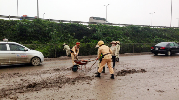 Một số người dân sống ở gần khu vực trên cho hay, sáng sớm họ mở cửa đã thấy đất cát rơi vãi đầy trên đường. Do lượng đất cát rơi vãi rất nhiều, cùng với thời tiết mưa phùn đã khiến khu vực đường dẫn này nhầy nhụa, tạo thành những cái “bẫy” đối với người tham gia giao thông. Nhiều người điều khiển xe máy, xe đạp đi qua đã bị ngã do đường trơn trượt. Một số khác đã phải xuống xe, dắt bộ khi nhận được sự cảnh báo của người dân.