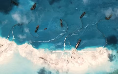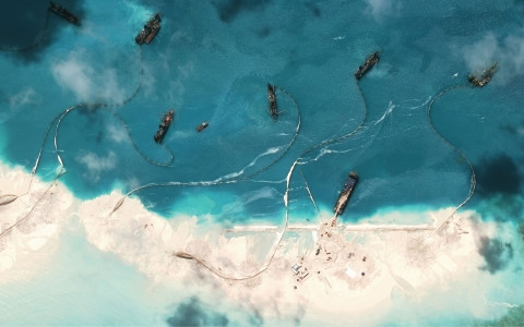 Hình ảnh vệ tinh bãi Vành Khăn bị Trung Quốc cải tạo phi pháp ở Biển Đông (Ảnh AP)