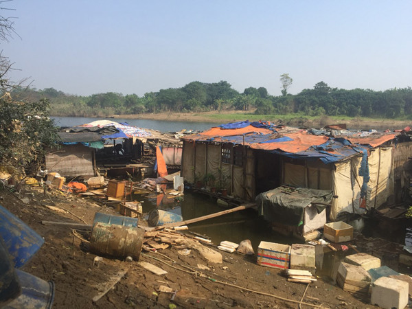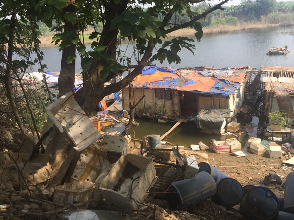 Những nhà bè tạm bợ ở xóm mặt nước sông Hồng