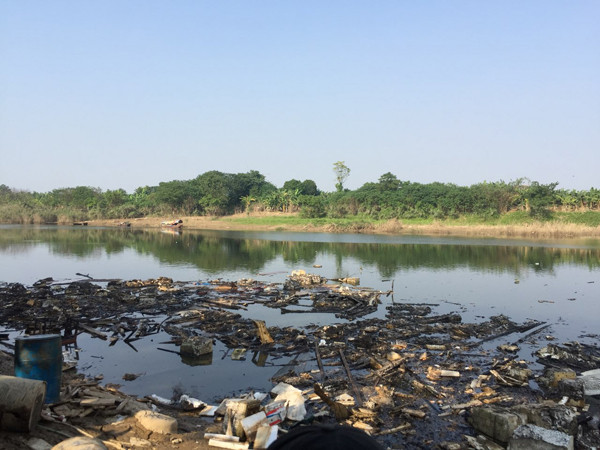 Bên cạnh đó, do sự bồi đắp của phù sa ở cả 2 phía đầu nguồn và cuối nguồn sông Hồng thì con lạch - nơi cư dân xóm mặt nước trú ngụ - đã biến thành ao nước tù đọng. Cống thoát nước từ những nhà dân trên phố An Xa, Nghĩa Dũng... đổ xuống khiến nơi đây trở thành bãi nước thải ô nhiễm khủng khiếp.