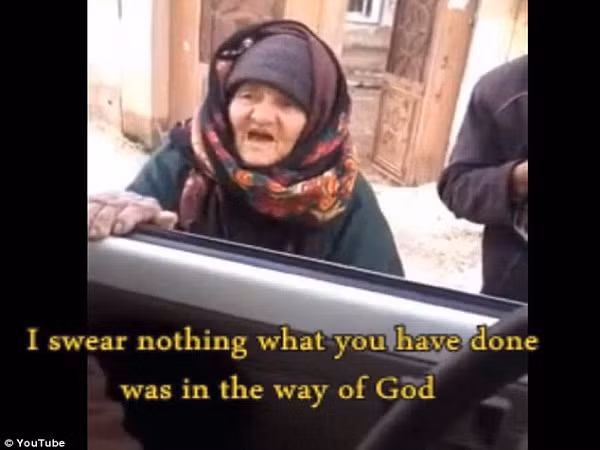 Video trực tuyến cho thấy một cụ già mặc quần áo của phụ nữ Hồi giáo, đứng bên ngoài cửa kính xe tải chở đầy binh sĩ cực đoan, lớn giọng chỉ trích và buộc tội, thậm chí còn gọi chiến binh là “quỷ dữ” khi tàn sát dân chúng vô tội.