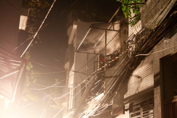Một đoạn đường Trường Sa được cúp điện, phong tỏa để lực lượng chữa cháy làm nhiệm vụ. Gần 30 phút sau, đám cháy được dập tắt hoàn toàn.