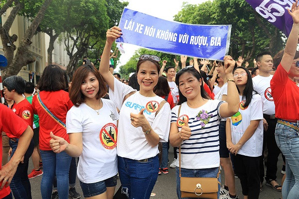Sự kiện hàng vạn người đi bộ quanh hồ Gươm (Hà Nội) để kêu gọi lái xe nói không với rượu, bia
