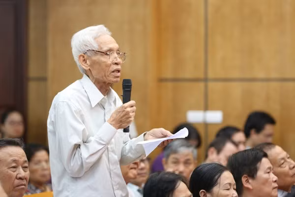 Cử tri Trần Viết Hoàn, quận Ba Đình phát biểu tại cuộc tiếp xúc cử tri