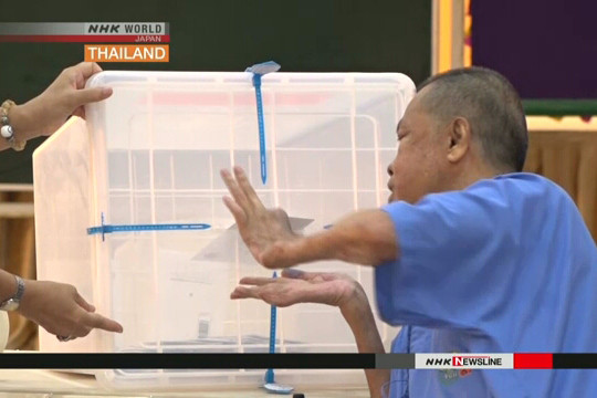 Một người khuyết tật ở Thái Lan đi bỏ phiếu sớm