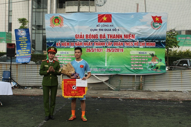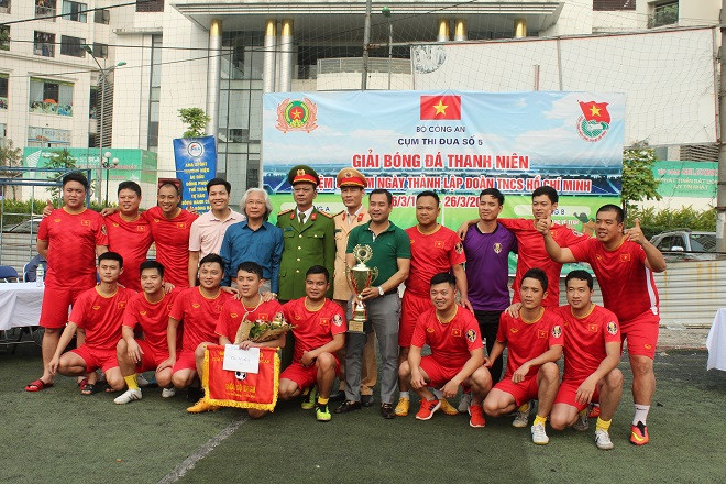 ANTD.VN - Sau 5 ngày diễn ra sôi nổi với các trận đấu, chiều 29-3, Cụm thi đua số 5 Bộ Công an đã tổ chức trao giải thưởng cho giải bóng đá thanh niên chào mừng kỷ niệm 88 năm ngày thành lập Đoàn TNCS Hồ Chí Minh.
