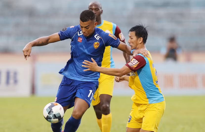 Đội chót bảng Khánh Hòa (bên phải) sẽ chiến đấu giành giật suất trụ hạng tới phút chót