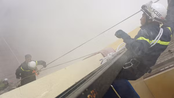 Cảnh sát PCCC thành phố Hà Nội thực tập phương án cứu nạn mắc kẹt trên nhà cao tầng