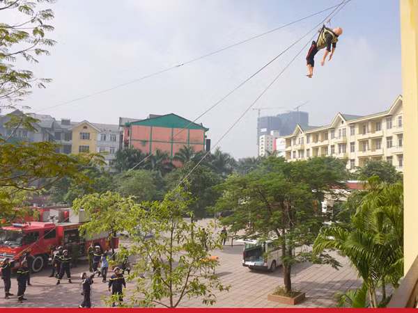 Cảnh sát PCCC thành phố Hà Nội thực tập cứu nạn bằng dây