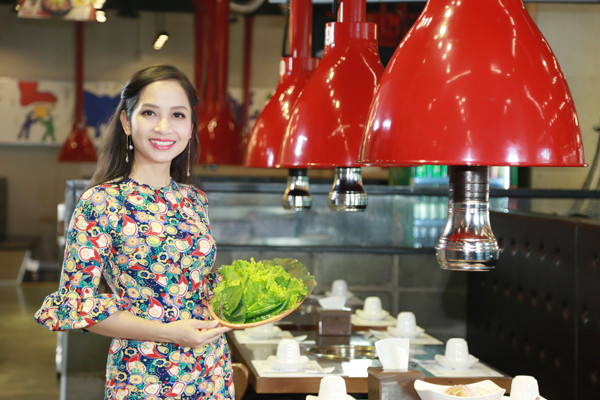 MC Diệu Thảo vô cùng hứng thú với các món ăn tại Meat Plus