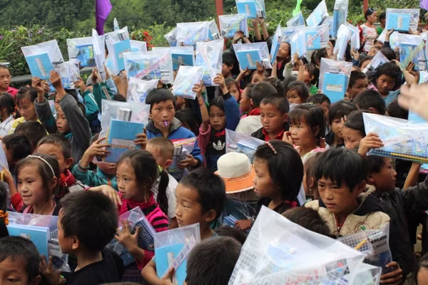 Cùng với đó là gạo, chăn cho học sinh nội trú và sách vở, truyện tranh, đồ dùng học tập
