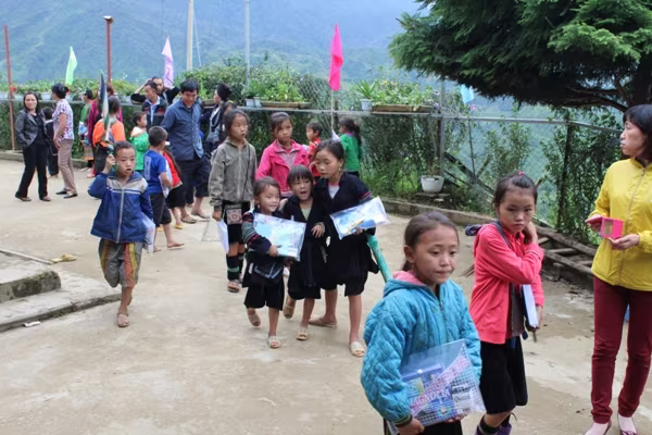 Để đến được trường học cái chữ, các em học sinh phải đi bộ 4-5 km, trong khoảng thời gian gần 2 giờ đồng hồ vì đường lên là vách đá dựng đứng. Dù vất vả nhưng các em học sinh vẫn kiên trì thực hiện ước mơ được cắp sách đến trường.