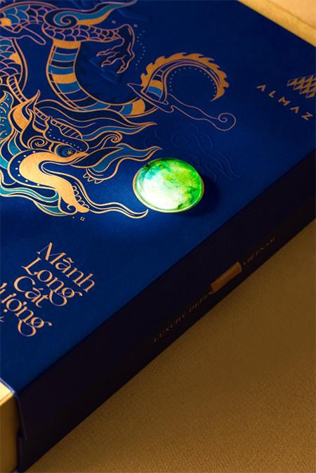Giữa những ngày cả nước kiên cường chống dịch, tinh thần quật cường và hào khí dân tộc là nguồn cảm hứng lớn để các nghệ nhân của Vinpearl Luxury Landmark 81 và Almaz tạo nên những hộp bánh trung thu truyền thống ý nghĩa. Đó là khí chất uy dũng từ họa tiết trang trí vỏ hộp - hình tượng rồng thời Trần ngậm ngọc – toát lên chí khí từ một trong những triều đại phong kiến thịnh vượng bậc nhất. Thân rồng dũng mãnh được cách điệu như đang uốn mình dọc theo dải đất hình chữ S, vươn mình từ núi cao đến đồng bằng, từ suối, sông ra biển cả… che chở cho sự thanh bình và phồn thịnh của đất nước.