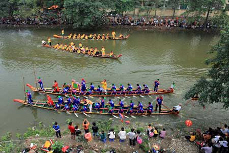 Năm nay, lễ hội diễn ra từ ngày 27 đến 29-4 (tức ngày 9 đến ngày 11-3 Âm lịch). Trong đó, cuộc thi Bơi Đăm được tổ chức trên dòng sông Pheo. Sẽ có 6 thuyền được chia làm 3 đội bơi. Mỗi đội có 2 thuyền có sự phân chia: hai thuyền miền Thượng mũi thuyền trang trí đầu con hạc; hai thuyền miền Trung, mũi thuyền trang trí hình đầu rồng; hai thuyền miền Hạ, mũi thuyền trang trí đầu con ly. Các thuyền phải vượt qua quãng đường từ trước nhà thủy tạ của đình đến miếu khoảng 1000m. Sau khi có hiệu lệnh, các thuyền đồng loạt lao lên phía trước, vun vút như những con thoi.