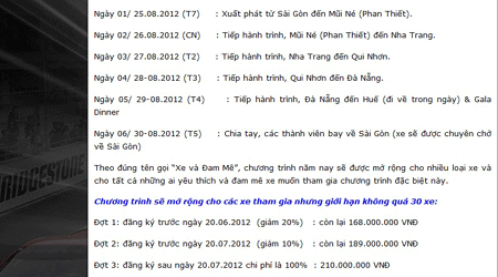 Nguyên nhân này cũng khó bị loại trừ khi chi phí cho mỗi thành viên tham dự lên tới 10.000 USD, tương đương khoảng 210 triệu đồng, một con số không hề nhỏ. Có thể do có quá ít thành viên tham dự nên chương trình lên lịch sẽ diễn ra vào ngày 30/4 đã phải thông báo rời lại vào tháng 8. Nếu không như vậy thì tại sao ngay sau đó, trên website chính thức của Hành trình siêu xecarpassion.vn, ban tổ chức đã phải đưa ra thông báo về chương trình “khuyến mãi” cho các thành viên đăng ký tham dự sớm. Cụ thể, hình thức khuyến mãi, giảm giá “hút” thành viên như sau: đợt 1, đăng ký trước ngày 20/06/2012 (giảm 20%), còn lại 168 triệu đồng. Đợt 2: đăng ký trước ngày 20/07/2012 (giảm 10%) còn lại 189 triệu đồng. Đợt 3:đăng ký sau ngày 20/07/2012 chi phí 100% là 210 triệu đồng.