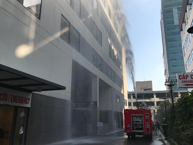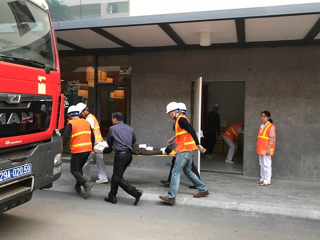 Tuy nhiên đám cháy lớn, tỏa ra nhiều khói độc nên đã có 4 người mắc kẹt tại tầng 6 không thể tự thoát nạn. Lực lượng phòng cháy, chữa cháy cơ sở đã tiếp cận bằng hướng cầu thang bộ và đưa được 2 nạn nhân ra ngoài bằng cáng.