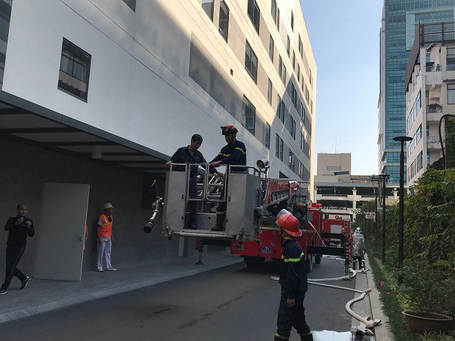 Vụ cháy giả định xảy ra tại tầng 6 của Bệnh viện Việt Pháp Hà Nội
