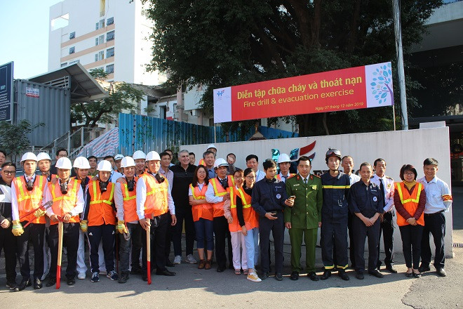 Buổi diễn tập có sự tham gia của hơn 70 cán bộ PCCC chuyên nghiệp và các lực lượng chữa cháy cơ sở, công an, y tế của Bệnh viện Việt Pháp Hà Nội.