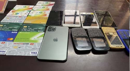 Khám xét nơi ở của 3 đối tượng, cơ quan Công an thu giữ 8 điện thoại di động, 10 thẻ ATM, 7 thẻ sim điện thoại chưa sử dụng, 8 máy vi tính và nhiều tang vật liên quan.