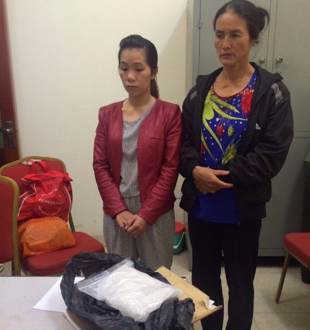 Hai đối tượng Nông Thị Phượng và Nông Thị Huệ cùng số ma túy tại CAQ Hoàn Kiếm