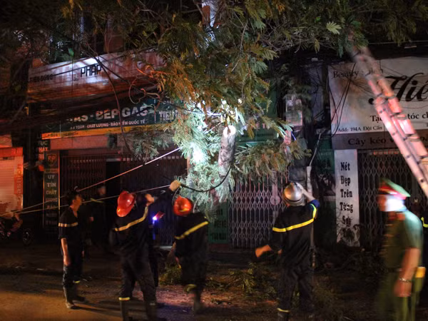 Ngay sau thực thực hiện các biện pháp an toàn cần thiết, lực lượng cứu hộ đã cưa cây xanh và chống đỡ mạng cáp điện về vị trí ban đầu để không gây nguy hiểm cho người tham gia giao thông.