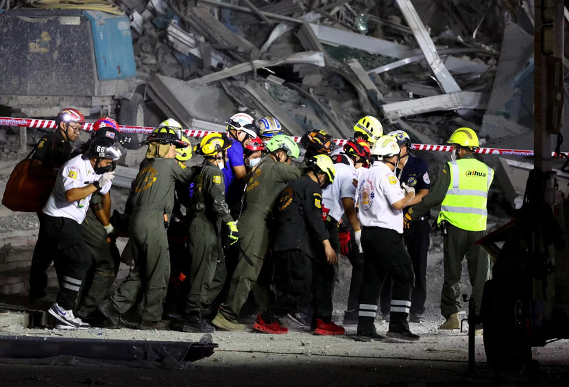 Thiết bị bay không người lái và chó nghiệp vụ đã được triển khai để xác định dấu hiệu của sự sống. Ít nhất 10 người đã tử vong tại Bangkok. Hàng chục người khác vẫn mất tích.