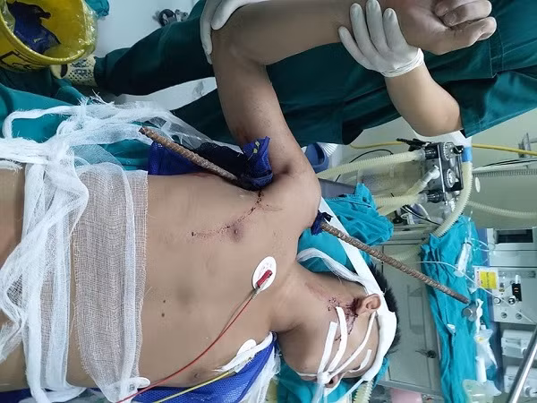 Bệnh nhân được đưa vào viện cấp cứu trong tình trạng thanh sắt đâm xuyên vai