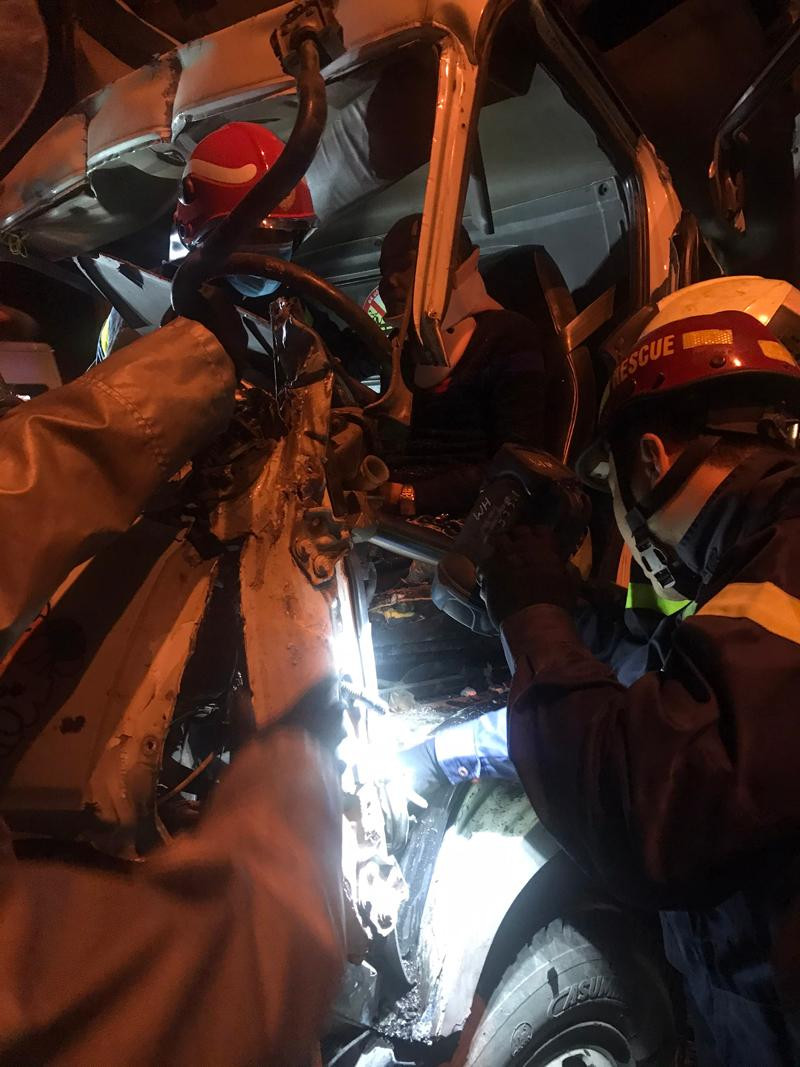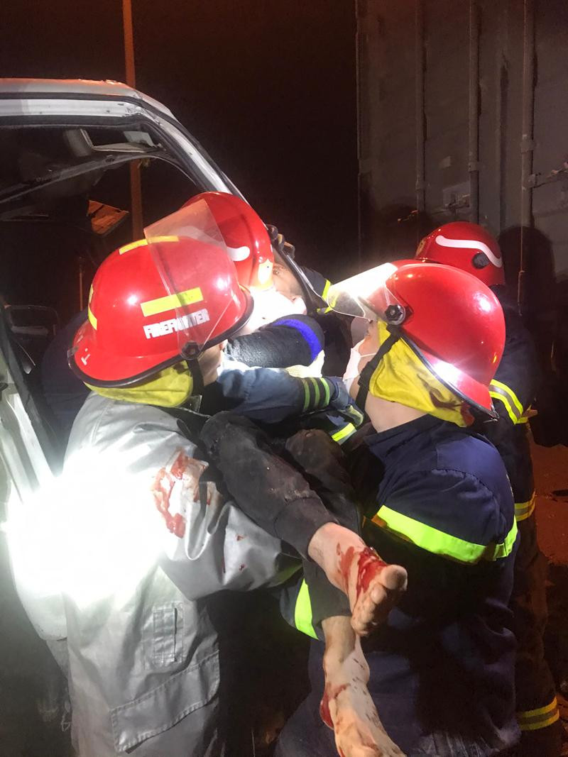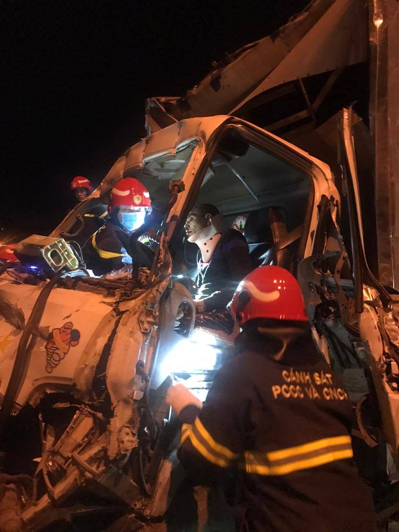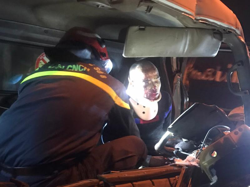 ANTD.VN - Lực lượng Cảnh sát phòng cháy, chữa cháy- Công an quận Hoàng Mai, Hà Nội đã cứu người bị kẹt trong ca bin xe ô tô sau vụ tai nạn cầu Thanh Trì vào lúc rạng sáng 22-3.