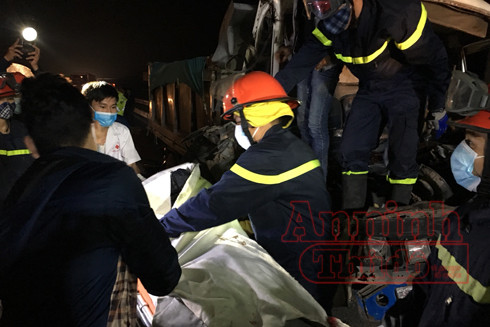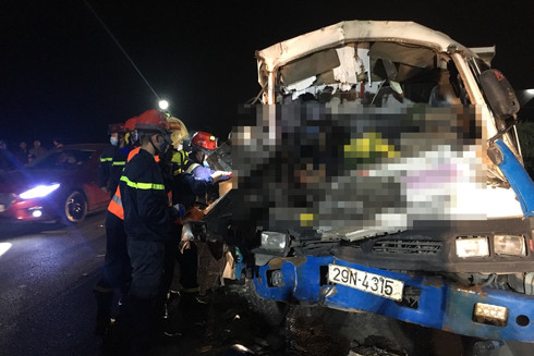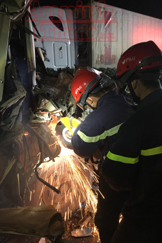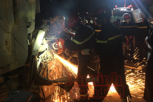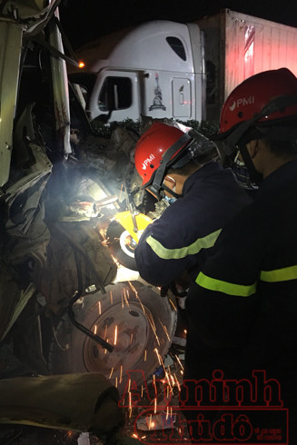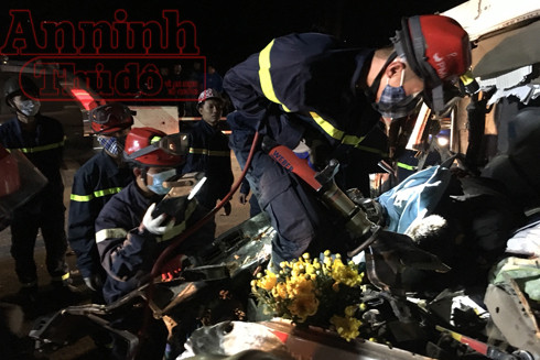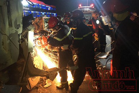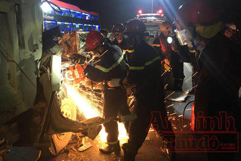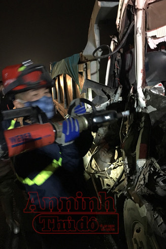 ANTD.VN - Phòng Cảnh sát PCCC số 12 - Thường Tín, Hà Nội tổ chức cứu nạn, cứu hộ người mắc kẹt trong cabin ô tô bị TNGT trên cao tốc Pháp Vân - Cầu Giẽ.