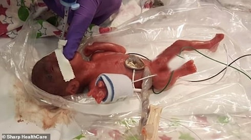 “Nhịp thở của bé rất nhanh, 100 nhịp/phút và cân nặng chỉ dưới 300gram chỉ bằng một quả táo, rất may là chúng tôi có thể đặt ống thở để duy trì hô hấp”, bác sĩ Wozniak nói.