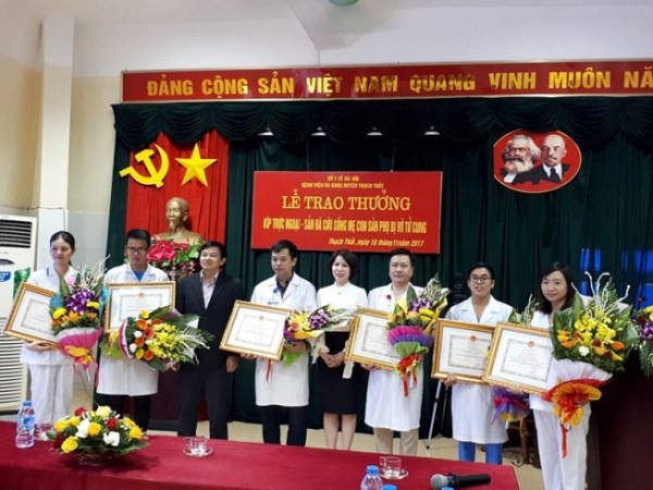 Đại diện Bộ Y tế trao Bằng khen của Bộ trưởng Bộ Y tế cho tập thể và 6 cá nhân của BVĐK huyện Thạch Thất, ngày 10-11
