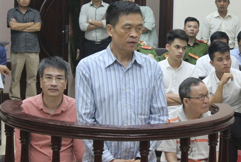Trần Văn Liêm (giữa) cùng đồng phạm tại phiên tòa phúc thẩm