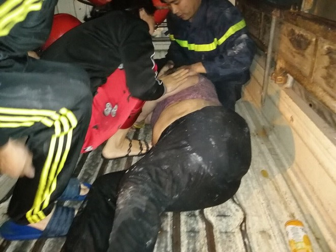 Một trong hai nạn nhân được ra khỏi đám cháy